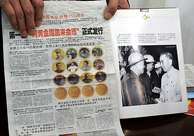 國圖銷售的周總理紀念金幣與杜修賢攝影作品的比對