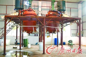 犯罪分子在廣東省內(nèi)先將冰毒制成半成品,然后在運(yùn)往福建進(jìn)行最后的加工。該工廠在4000平方米的廠房內(nèi)安裝了占地龐大的兩套大型的化學(xué)反應(yīng)釜,可同時(shí)生產(chǎn)0.5噸的毒品。