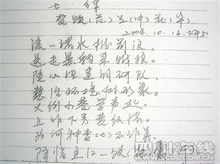 “紀委的處理不針對短信內(nèi)容,只針對公安局的行政處罰決定書作出的處理!11月4日下午,通江縣紀委常委、負責辦案的向靜平在接受采訪時表示:“自己至今都沒有看到這個‘七律詩’!