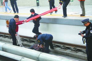 目擊者劉女士稱,墜軌事件發(fā)生在9時(shí)30分許,她當(dāng)時(shí)正在該站等地鐵,突然聽(tīng)見(jiàn)刺耳的剎車聲,列車在進(jìn)站口就停下了,一個(gè)人臥倒在車前,地鐵員工等聞聲急忙前來(lái)救人。