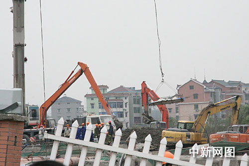 中新網(wǎng)杭州11月17日電(記者 柴燕菲 江耘)今天,記者在施救現(xiàn)場看到,施救人員在地鐵坍塌現(xiàn)場將第五具遇難者尸體打撈上來。