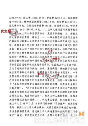 記者在判決書掃描件中的確發(fā)現(xiàn)不少筆誤,比如把“導(dǎo)致”寫成“導(dǎo)治”、“人工流產(chǎn)”寫成“工人流產(chǎn)”、“附件炎”寫成“附件驗”和“附件鑒”、“被上訴人”寫成“被上訴們”、“認為”寫成“真?zhèn)巍,“拒查”寫成“?jù)查”、“整理”寫成“整體”、“人流史”寫成“人流使”等。