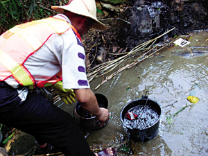 11月30日20時(shí)41分,深汕西路政部門接到惠州交警支隊(duì)高速公路一大隊(duì)信息,在深汕高速公路西行K338+800m處有兩輛油罐車排放液體污染物。路政人員隨即趕到現(xiàn)場。當(dāng)時(shí),嫌疑人王會(huì)增、王增國等四人正向附近河道排放污物。路政人員立即通知惠陽區(qū)公安部門和惠陽區(qū)環(huán)保局。隨后,王會(huì)增等四人被民警帶走,暫扣作案車輛。目前,案件仍在調(diào)查當(dāng)中。