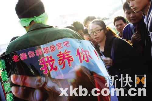 這名勸妻男子來自佛山,隨身掛著自制的“養(yǎng)妻標(biāo)準(zhǔn)證書”:宣稱按“農(nóng)民工養(yǎng)妻一月只需678元”的標(biāo)準(zhǔn),月薪1500元的他完全可以養(yǎng)活妻子。
