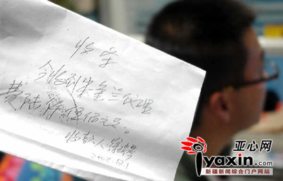 記者看到了這張收條,是在一張出租車(chē)發(fā)票背面寫(xiě)的。