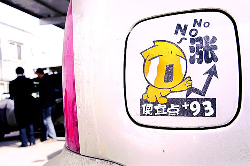 近來,受經(jīng)濟(jì)危機(jī)影響,國際油價(jià)一路走低,但國內(nèi)油價(jià)卻居高不下。對(duì)此,很多車主都很無奈。貼上這頗具諷刺意味的車貼,可以在每次加油時(shí)都小小地抗議一下。(來源:華商報(bào))