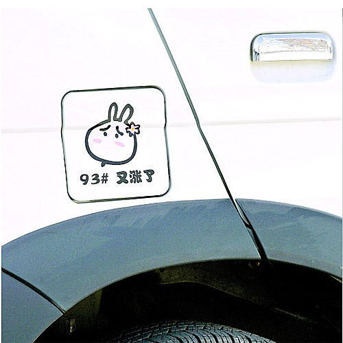 昨日,在西安北郊一停車場(chǎng)內(nèi),一輛車的油箱蓋上貼著卡通小人為汽油漲價(jià)而痛哭的表情,令過往觀者忍俊不禁。無獨(dú)有偶,在西安南二環(huán)路邊上,一輛車的油箱蓋上,小兔子也皺著眉頭,一行小字“93#又漲了”。
