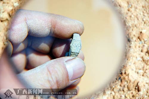 在上思縣前段時間出土的“三合土”巨棺的墓坑邊,居然出現(xiàn)一只“手表”。12月11日,相關考古專家和中央電視臺記者來到巨棺出土現(xiàn)場考察時,發(fā)現(xiàn)了這樣令人驚訝的事情。