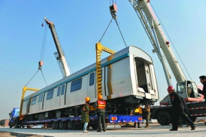 (北京市)首批地鐵4號(hào)線新車昨日進(jìn)入馬家堡車輛段,為明年2月開始的冷熱滑試驗(yàn)做準(zhǔn)備。初定明年9月底,4號(hào)線正式通車運(yùn)營。
