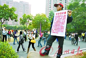 一名36歲男子打出“百分百征婚”廣告。莊小龍攝(圖片來(lái)源:廣州日?qǐng)?bào))