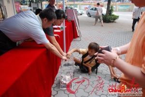 2008年5月12日下午,汶川地震爆發(fā)。在廣州華樂街的支援抗震救災(zāi)募捐活動中,一個用手走路的乞丐,來到現(xiàn)場說“我要捐款”。