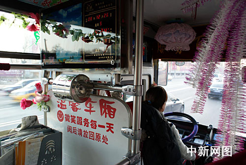 “接新車前,我就有把車廂裝扮得像自己家一樣的想法,F(xiàn)在,我的車上已經(jīng)布置了很多小設(shè)備,比如鏡子、木梳和洗漱池,都是給一些和我一樣愛美的女士準備的。夏天的時候她們可以在乘車的過程中照照鏡子,打扮打扮自己!闭f起自己最滿意的創(chuàng)意布置,該公交車的司機王女士這樣告訴記者。