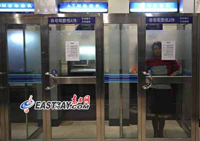 記者于昨天傍晚趕到事發(fā)的自助銀行看到,兩名料理店店員仍舊守候在大門(mén)口,而女子則背對(duì)他們站在ATM機(jī)前不肯回頭。期間曾有人拍打防護(hù)門(mén)請(qǐng)她走出,但女子并未理睬。店員表示,他們也曾勸她出來(lái),但女子始終拒絕,并稱(chēng)身上帶有一把很鋒利的瑞士軍刀,不讓他們靠近。