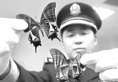 野外生存數(shù)量與大熊貓差不多的金斑喙鳳蝶,人們在大自然中幾乎見不到。但讓鄭州海關(guān)緝私警察為之一驚的是,他們在查獲的國際航空掛號信里,不僅見到了24枚喙鳳蝶標(biāo)本,還見到了極為罕見的2枚金裳鳳蝶標(biāo)本。記者今天從鄭州海關(guān)獲悉,他們成功偵破了一起利用郵遞渠道走私珍貴蝴蝶標(biāo)本出境的案件。