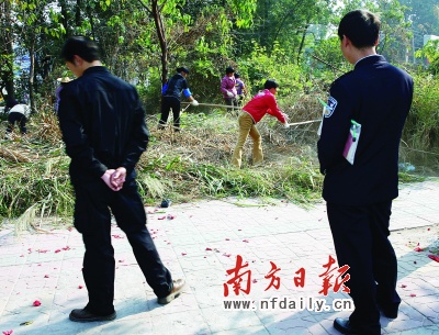 “尸體!”這是阿龍的第一反應(yīng),盡管不是很確定,同伴還是撥打了報(bào)警電話。近十輛警車隨后到來(lái),這塊是非之地瞬間被警戒線圍了起來(lái)。法醫(yī)在草叢里進(jìn)進(jìn)出出。
