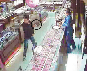 “這人我有印象,他以前來(lái)過(guò)店里!狈磸(fù)看了幾遍監(jiān)控錄像后,店長(zhǎng)鄭小姐突然說(shuō)。鄭小姐說(shuō),這名黑衣男子去年臘月底曾到過(guò)店內(nèi),當(dāng)時(shí)他穿的是一身運(yùn)動(dòng)裝,同來(lái)的還有另一名青年男子,兩人進(jìn)店后看了兩三個(gè)小時(shí),詢問(wèn)了上10種珠寶首飾的價(jià)格,但什么都沒(méi)買,她和另一名店員還曾報(bào)怨過(guò),所以印象較深。