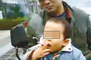 這段長達四分半鐘的視頻是一名網友十天前發(fā)布的,聲稱是在萬州周家壩現實攝錄,視頻上面一名兩三歲的小男孩坐在一輛大人的摩托車前部,在一群成年人一陣“燒起”的起哄聲中,開始表演點火抽煙。