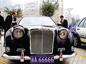 昨日,記者在論壇上看到,天涯網(wǎng)友“還說啥”貼出了兩張同樣懸掛著“渝A66666”藍(lán)底色車牌的豪華車,其中一輛為一臺(tái)限量版的日本光岡老爺車,據(jù)估計(jì)價(jià)格約為一千萬元人民幣。網(wǎng)友還指出,老爺車好像是重慶一開發(fā)商的。
