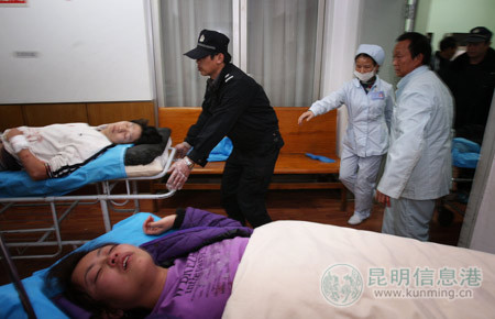 當晚22時35分4名傷者被送往云南省第三人民醫(yī)院搶救。其中王文艷于10日上午11時22分經(jīng)搶救無效死亡;另一男性傷者受左心包破裂傷、肺裂傷、膈肌穿通傷、胃穿通傷,仍未脫離危險。