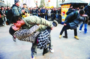 身邊的對(duì)手相繼落地,4號(hào)先生還在堅(jiān)持。當(dāng)主持人宣布他是唯一還沒(méi)倒下的人時(shí),他仍鉚著勁站了一會(huì)兒。“她真的挺沉的!狈畔屡,4號(hào)先生重重地喘了口氣,女友則給了他一個(gè)大大的擁抱。這對(duì)4號(hào)情侶最終贏得了一部摩托羅拉手機(jī)!笆謾C(jī)送給女朋友,當(dāng)做情人節(jié)禮物!4號(hào)先生摟著女友,大聲地宣布。(記者王卡拉 實(shí)習(xí)生魏楠)