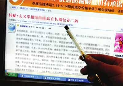昨天11點03分,西祠網(wǎng)站“記者的家”論壇中,網(wǎng)民“行風監(jiān)督”提交了一篇名為《轉(zhuǎn)帖:實名舉報高官長期包養(yǎng)二奶》的帖子。