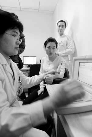 體檢開始了:內(nèi)外科普檢、骨密度、人體成分分析……當(dāng)蔣敏接受“腰頸椎”拍片檢查時,她下意識地用雙手撫了一下腰。見狀,劉群新醫(yī)生熱淚盈眶,她告訴記者,地震發(fā)生后,蔣敏連續(xù)7天7夜奮戰(zhàn)在一線上,搬石板、救戰(zhàn)友,她以常人難以想象的意志力,克服了喪母喪女之痛,用柔弱的雙肩挑起了公安民警的重?fù)?dān)。因積勞成疾,她的腰椎承受了太大的壓力。