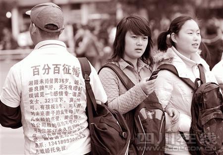 “愛情像保險公司般的保險不變心,與你簽訂永久性婚姻合同……”昨日中午,湖南永州人王錫國身著寫有征婚廣告的白色短袖T恤,在成都鹽市口中環(huán)廣場門口征婚。市民對此議論紛紛,有人說贊賞他尋愛的勇氣,但多數人說他“有毛病”。