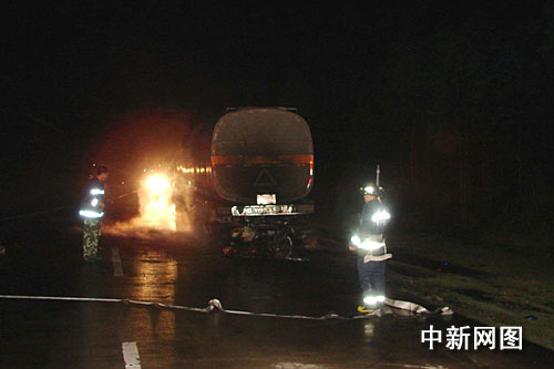 中新網(wǎng)欽州3月6日電 (田華松 王剛)3月6日凌晨,廣西欽州市欽州至陸川公路一輛摩托車撞向油罐車并引發(fā)大火,摩托車手不幸在大火中喪生,由姿勢可見死前非常痛苦。
