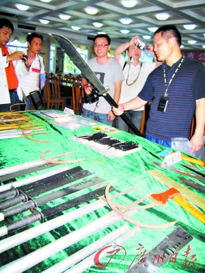 此外,“潮州偉”曾在當?shù)匾患胰獠耸袌鰧?0余肉販收“保護費”,每家4000元,如果肉販不同意交“保護費”,那么攤上的豬肉將由“潮州偉”高價供應,如果兩者都不同意,“潮州偉”就帶人拿刀砍肉販,嚇得肉販不得不從。今年4月7日,“潮州偉”在東莞落網(wǎng)后,“潮州偉”60多歲的母親甚至不以為然,代替兒子到肉菜市場繼續(xù)“收數(shù)”,并威脅肉販如果不如數(shù)交錢她一樣請某團伙出面砍人,結(jié)果這個60余歲的老太太仍然從肉販手中收到7000余元。