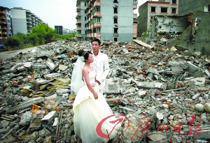 去年5月14日,我們?cè)谡鸷蟮谝粫r(shí)間深入北川縣城廢墟,在汶川大地震中傷亡最慘重的北川縣城,滿目瘡痍、巨石軋瓦。在一條臨時(shí)開(kāi)辟的山道上,不時(shí)有擔(dān)架將剛救出來(lái)的傷員快速地運(yùn)往戰(zhàn)地醫(yī)院,死亡的黑氣緊緊地壓在縣城的上空。