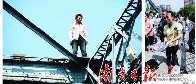 海珠橋,儼然成了“跳橋圣地”,F(xiàn)場幾位媒體同行揶揄說,全城應(yīng)該集體封殺海珠橋。是的,同樣是這個(gè)殘疾男人道出了大多數(shù)跳橋者的心聲,“只有這里,才能吸引社會(huì)的關(guān)注。”每一次海珠橋跳橋秀,全城媒體幾乎都要出動(dòng)。