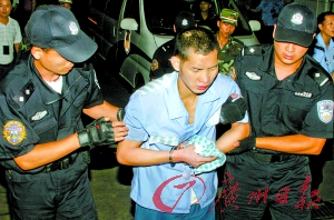 杜秋發(fā):沒(méi)有。過(guò)去我們從審訊他的同伙中知道成瑞龍雖然六親不認(rèn),但心里還是牽掛自己的兒子的,當(dāng)我們問(wèn)他有什么要求時(shí),他回答說(shuō):“我最關(guān)心我仔,希望能見到他。”我當(dāng)時(shí)就說(shuō):“等回到佛山,他們會(huì)盡量安排你們見面的,而且我們看到你兒子了,長(zhǎng)得很高大很帥!彼那榫w很快就恢復(fù)平靜,對(duì)殺害佛山民警案件供認(rèn)不諱,后來(lái)一路押解回來(lái)也很順利。