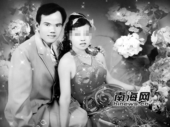 4日下午,在臨高縣公安局,南國都市報記者見到了黃竹新。黃竹新長得又黑又瘦,雖說才33歲,但看樣子感覺是已40歲出頭了。而他的妻子才23歲,相貌不錯,兩人的外觀相差很大。