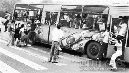 昨日上午8時(shí)左右,一輛8路空調(diào)車駛至成都萬(wàn)年場(chǎng)公交站時(shí),有位女乘客突然尖叫,車上大約60名乘客頓時(shí)慌作一團(tuán)。司機(jī)迅速將車?柯愤叢⒋蜷_(kāi)車門(mén),但仍有乘客打碎玻璃從車窗跳下“逃生”,1分鐘不到所有人全部逃離車廂。事后證明只是虛驚一場(chǎng),所幸沒(méi)有造成人員傷亡。
