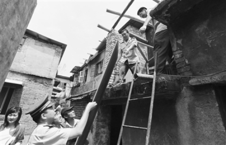 “這處違建不能一拆了之”,楊敏與隊員們商議,共同捐資2000元,買了磚石砂料。昨日,宗關街城管執(zhí)法中隊6名隊員來到現(xiàn)場,依法拆除違建的亭子間,同時運砂砌磚,改造加固房體,修建隔雨層,不料被街坊鄰居舉報。