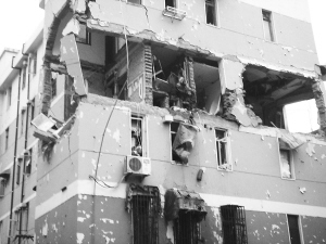 事發(fā)后,樓內(nèi)有居民自行逃出,警方和消防搶險人員趕到后,從中救出了數(shù)名傷員。爆燃產(chǎn)生的巨大沖擊波,還致使樓房旁一根高約15米的電線桿發(fā)生傾斜。供電部門為安全起見,切斷了整個小區(qū)的供電。記者在現(xiàn)場看到,一輛電力搶修車已送來一根新電線桿,準備待警方勘查完后施工。