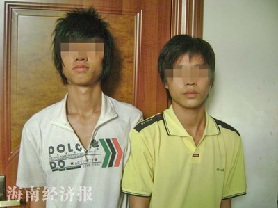 6月23日凌晨2時30分左右,犯罪嫌疑人盧健伙同張發(fā)、阿龍把女孩陳某婷(表姐)和陳某美從三亞河步行橋頭帶到三亞河西區(qū)城市樂園魚塘邊企圖強奸,趁三名犯罪嫌疑人不注意,表姐陳某婷及時穿好衣服跳入三亞河引開三名嫌疑人,表妹陳某美趁勢跳入魚塘順河而上逃脫魔掌。姐姐游泳過河后,及時到三亞市新居派出所報警,民警于當晚9時30分抓獲兩名嫌疑人(圖)。
