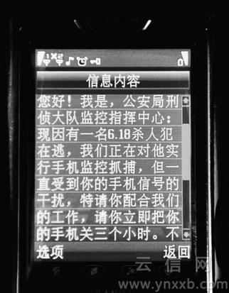 “您好!我是公安局刑偵大隊監(jiān)控指揮中心:現(xiàn)因有一名6.18殺人犯在逃……請你立即關(guān)閉手機三小時,否則拘留七至十五天!苯拥竭@樣的短信后,岳代林相信了,關(guān)閉了手機。然而發(fā)短信的人卻利用他關(guān)電話的空當,向他身在四川的家屬謊報他出了“車禍”。然而假的真不了,再高明的騙局遲早也要“露餡”。