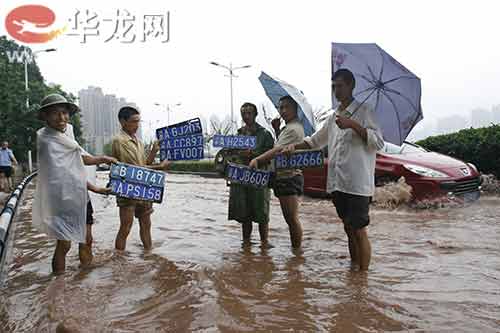近兩天,山城重慶遭受了大暴雨襲擊,導(dǎo)致主城有些路段積水深達(dá)幾米,不少過往車輛猶如在江中行駛,造成一些車牌飄落于積水中。不少“撈客”卻從中發(fā)現(xiàn)了“商機(jī)”,他們將積水中撈出的車牌,在返還車主時(shí),向他們索要100元的幸苦費(fèi)。