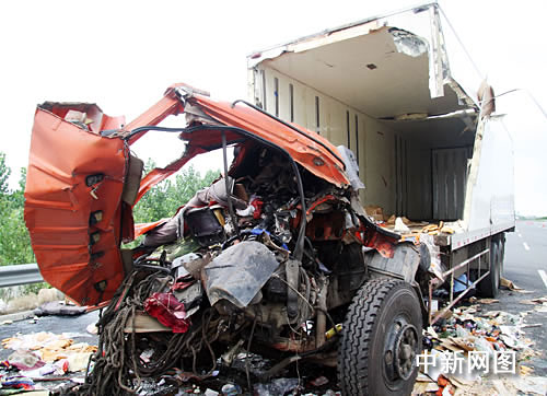 中新網(wǎng)鹽城八月六日電 (于從文 童盛)今天清晨四時許,沿海高速鹽城射陽段二〇二處發(fā)生一起貨車追尾事故,一輛車牌號為魯K二四七五六的大型冷藏車與前方車牌號為遼H九五〇七掛的大型貨車追尾相撞,導(dǎo)致后方冷藏車內(nèi)兩人當(dāng)場死亡,前方貨車內(nèi)一人送往醫(yī)院后搶救無效死亡,另一人受輕微傷。