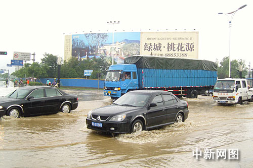 中新網(wǎng)杭州8月10日電(記者 龔讀法 見習(xí)記者 王磊 實(shí)習(xí)生 馬杰)8月9日,受第八號(hào)臺(tái)風(fēng)“莫拉克”影響,杭州降水量劇增,杭州不少道路遭雨水淹沒。8月10日,“莫拉克”對(duì)杭州的影響開始減弱,杭州道路積水有所緩和,而之前積水最嚴(yán)重的天目山路永和路口足膝的積水,也開始下降,各部門正積極排澇工作中。