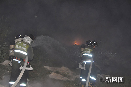 中新網(wǎng)來賓8月10日電 (陳小勇 王剛) 8月10凌晨1時30分許,廣西來賓市興賓區(qū)物資總公司炸藥庫附近,一堆不明物體突然發(fā)生燃燒并產(chǎn)生大量煙霧,火勢逐漸向四周蔓延,嚴(yán)重危及到倉庫內(nèi)存放的10噸炸藥。