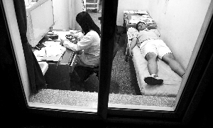昨日凌晨,北醫(yī)三院急診大廳內(nèi)擠滿了身穿“北京郵電大學”服裝的輸液學生。