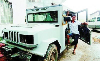 一說(shuō)到“悍馬”,人們馬上會(huì)想到那擁有“越野之王”美譽(yù)的龐然大物,可瀏陽(yáng)文家市鎮(zhèn)文華村28歲的花炮機(jī)械設(shè)計(jì)師楊倫偉,著迷于“悍馬”的彪悍外形,突發(fā)奇想,與徒弟一起造出了一輛“山寨悍馬”,惹得周圍鄰居連連稱奇。