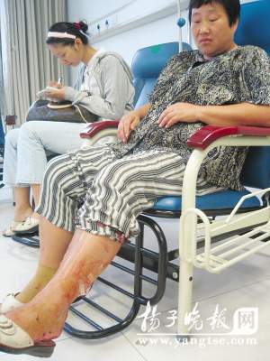 記者在醫(yī)院看到,周大媽左腳上被狗咬出了兩個深深的洞,左腿小腿肚子上也是鮮血淋漓,被醫(yī)用紗布包扎著,“腿肚子縫了三針!敝艽髬尩睦习楦嬖V記者,他們到醫(yī)院后已經(jīng)交了兩千塊錢醫(yī)藥費了,民警讓他們先看病,費用肯定是要跟狗主人算的。他還告訴記者,周大媽是一名腫瘤患者,平時身體就不好,這次被狗咬傷了,又是掛水又是打疫苗,還不知道對腫瘤的治療有沒有影響。