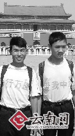 用了近半年時間,行程達萬余里,從云南臨滄市云縣徒步啟程,途經(jīng)廣西、湖南等7省(區(qū)),最終趕在新中國60歲生日前順利到達首都北京。從今年3月開始,云縣的楊世和及兒子楊澤泳,帶著家鄉(xiāng)人對祖國的祝福,以“徒步”的獨特方式喜迎新中國成立60周年。