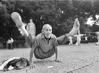 昨日清晨,91歲的肖清連老人在施洋烈士公園內(nèi)表演“功夫”,吸引了不少晨練者駐足觀看。
