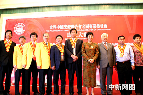 世界中國烹飪聯(lián)合會名廚專業(yè)委員會今年一月經(jīng)國家批準(zhǔn),正式注冊,名稱確定為“世界中國烹飪聯(lián)合會名廚專業(yè)委員會(Famous Chef Committee of the World Association of Chinese Cuisine)”。簡稱“世烹聯(lián)名廚委”,作為世烹聯(lián)下設(shè)的二級機構(gòu)同樣將辦公場所設(shè)在北京。旨在為加強國際中餐廚師的交流,提高中餐烹飪技藝水平及中餐廚師的國際地位。圖為楊柳會長與首屆委員們合影。