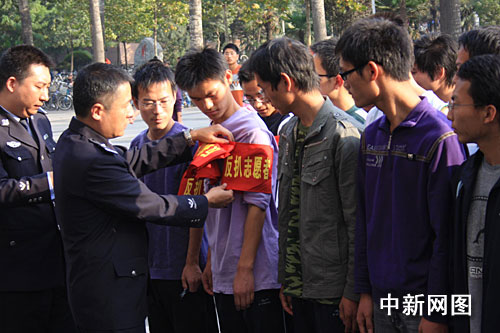 中新網(wǎng)鄭州10月23日電 (記者 晏立海 馬雯雯)10月23日下午,鄭州市反扒支隊一大隊的反扒高手們來到河南農(nóng)業(yè)大學(xué),教授百名學(xué)生反扒技巧。這是鄭州市公安局反扒支隊向社會招聘2000名大學(xué)生反扒志愿者的首批學(xué)員,這些大學(xué)生們經(jīng)過培訓(xùn),10月24日將走上街頭協(xié)助反扒民警抓小偷。