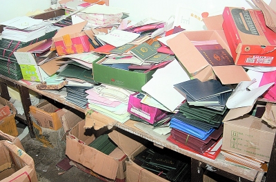 10月24日,根據(jù)前期偵查摸底掌握的情況,(甘肅省蘭州)市公安局便衣偵查支隊在七里河一家屬院,打掉一家族式特大制販假證犯罪團(tuán)伙,抓獲6名犯罪嫌疑人。3間臥室里堆滿了假證,4名民警整整數(shù)了20個小時。
